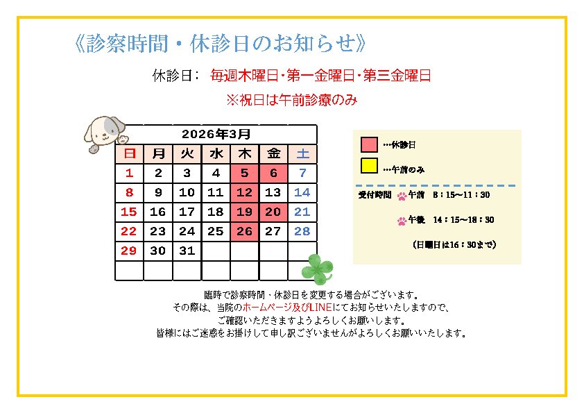 3月の診察日程について